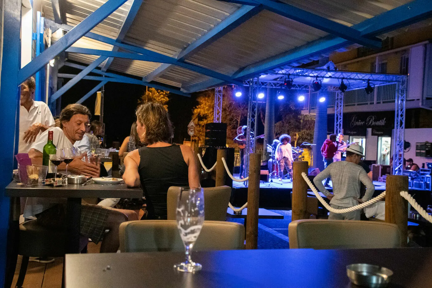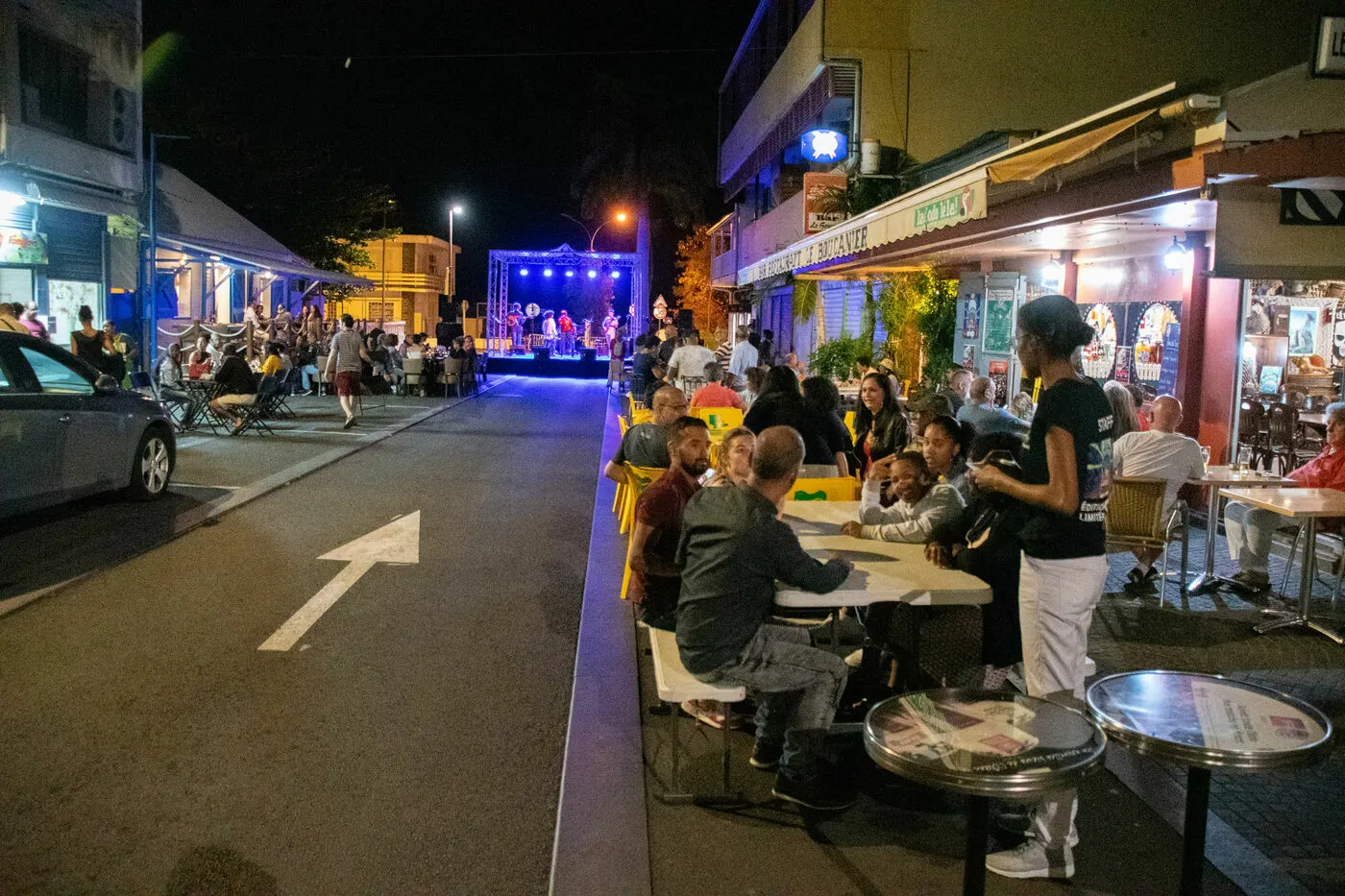 Enfin, au coucher du soleil, les effluves des plats et les premières notes de musique attirent le public vers le bas de la rue François de Mahy. Là, autour des tables et chaises installées sur cette portion de route rendue piétonne, 3 restaurants – L’Abordage, Romazava et Le Boucanier- proposent exceptionnellement des repas un samedi soir. Le tout dans une belle ambiance assurée par Dj Seb sur Set et Bann’ Kayou en live sur la scène.