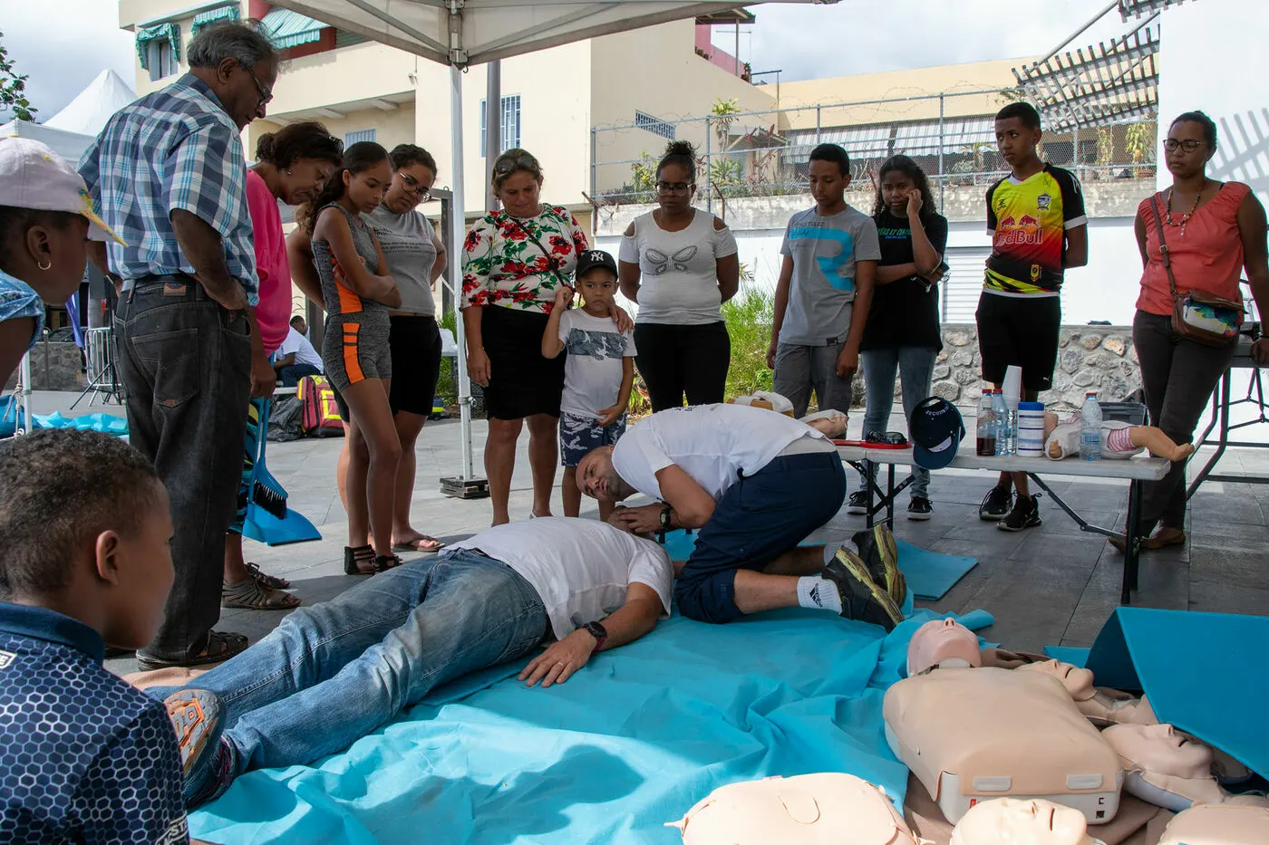 Bazar Kréol à l’intérieur, sur le Parvis du Grand Marché, il est question de sauver des vies en apprenant des gestes de premiers secours. Dans le cadre de la Journée mondiale des premiers secours, la Croix Blanche organise des ateliers d’initiations aux gestes qui sauvent. Pendant toute une journée, on pouvait se familiariser avec la position latérale de sécurité (PLS), apprendre ce qu’il faut faire en cas d’étouffement et les étapes pour porter secours efficacement. Les participants repartent avec une attestation de participation.