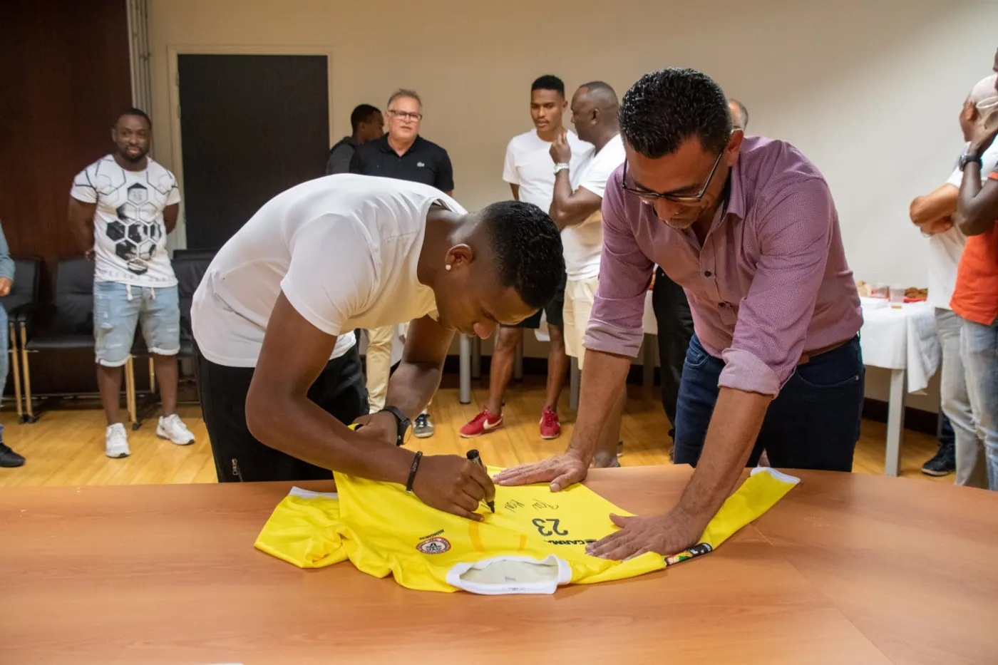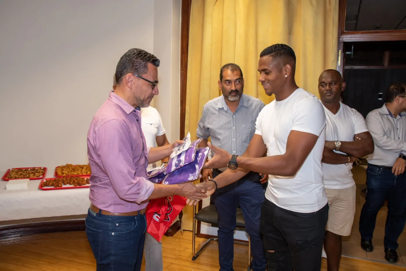 Lors de cette réception organisée hier soir à la Mairie du Port, en présence des proches de deux joueurs, des membres de la Jeanne d’Arc et des élus du Conseil municipal, Melvin Adrien a remis au Maire un maillot dédicacé de l’équipe de Madagascar. Le joueur du FC Martigues est reparti dans son club avec la panoplie du supporter de la Jeanne d’Arc.