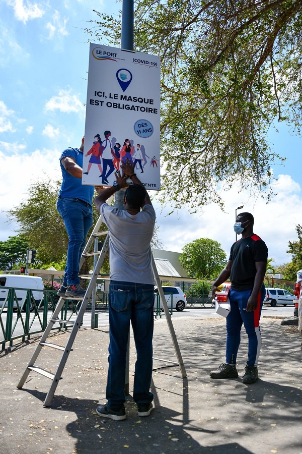 La ville du Port déploie une cinquantaine de panneaux grand format pour rappeler l’obligation du port du masque à ses habitants. Mesure de lutte contre l’épidémie de coronavirus, le port du masque, rendu obligatoire par arrêté préfectoral s’applique à toute personne âgée de 11 ans et plus.