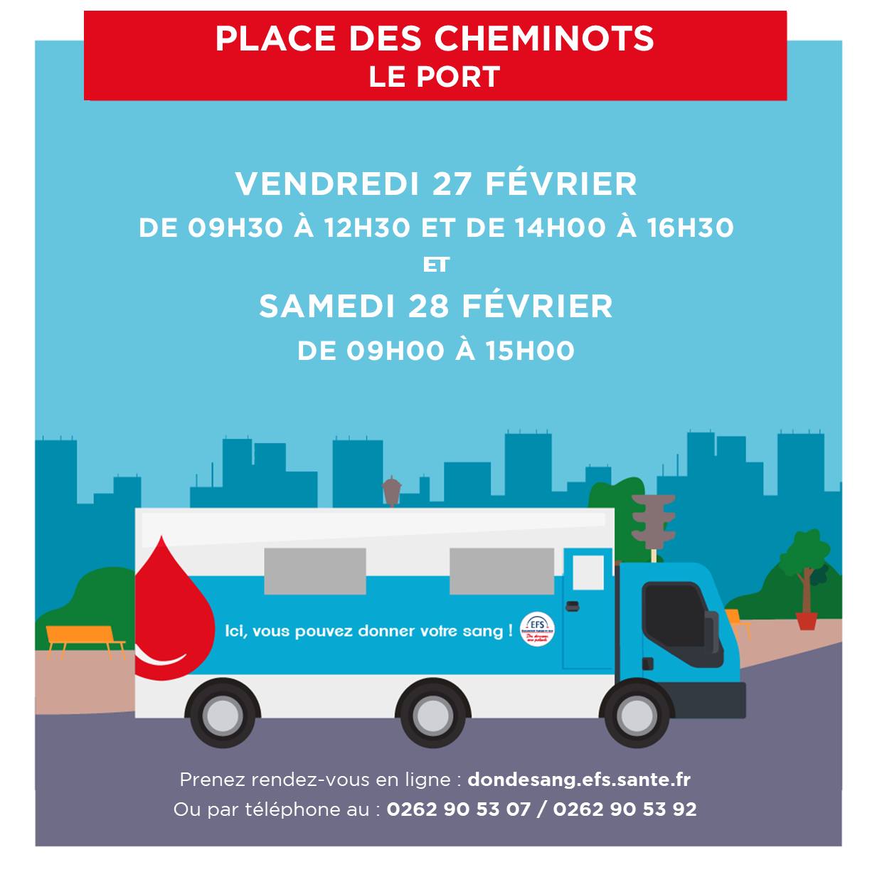 Prenez rendez-vous en ligne: dondesang.efs.sante.fr ou par téléphone 0262 90 53 07/ 0262 90 53 92.