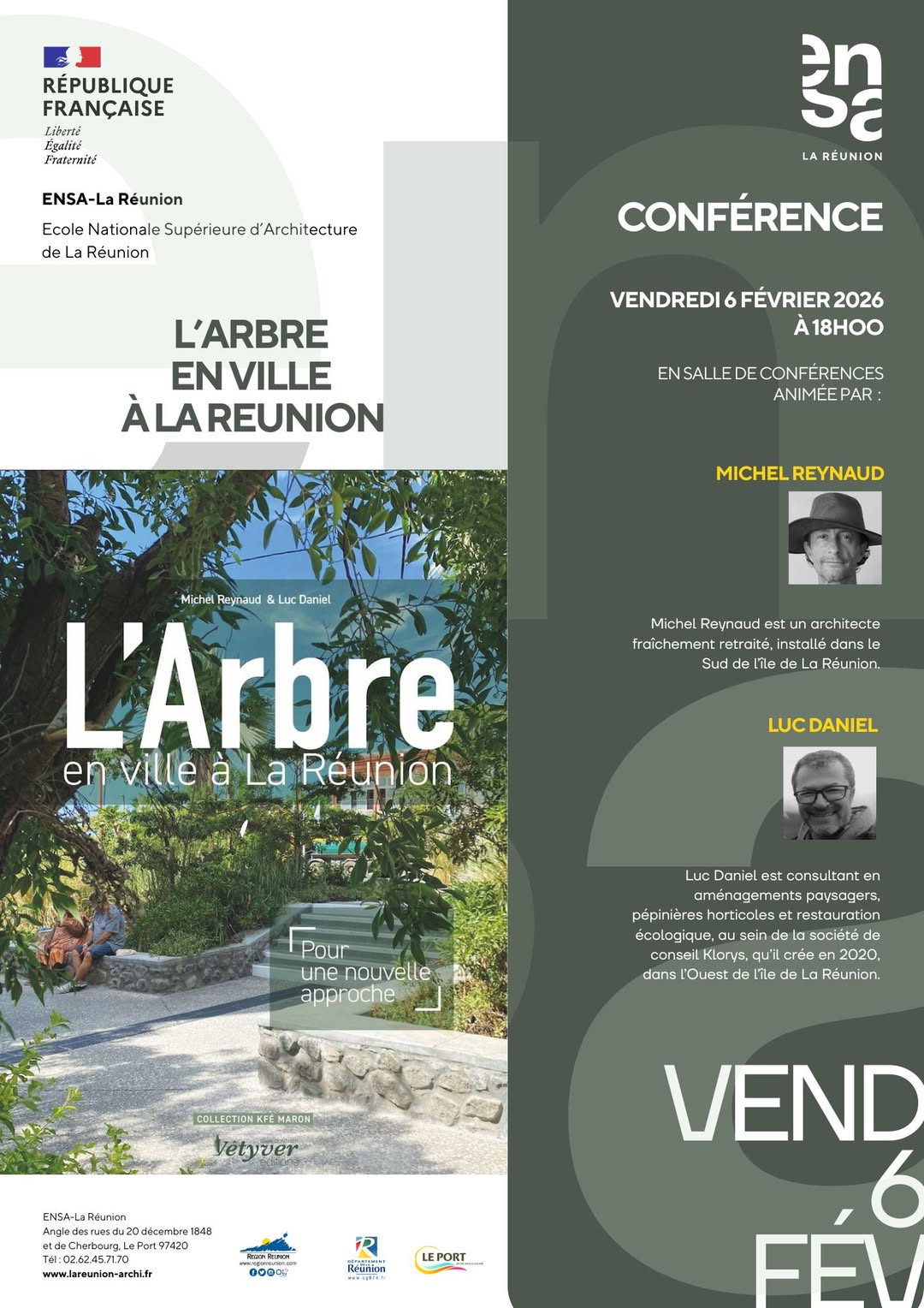 📆 vendredi 6 février à la salle de conférences, École Nationale Supérieure d’Architecture de la Réunion.