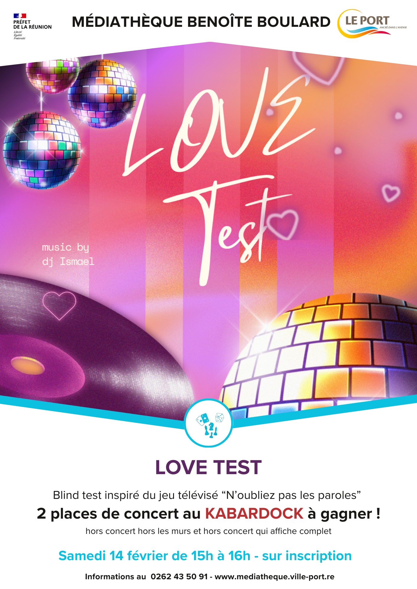 À la médiathèque Benoîte Boulard ce samedi 14 février de 15h à 16h, trouvez les paroles lors du jeu « Love test ».