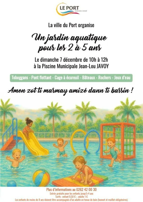 Tout pour faire plaisir aux enfants en cette période de chaleur…Nager, jouer, s’amuser ! La ville du Port organise des ateliers ludiques et éducatifs afin de permettre aux enfants de découvrir les plaisirs de l'eau. Le Jardin aquatique est ouvert aux enfants de 2 à 5 ans. Dimanche 7 décembre […]