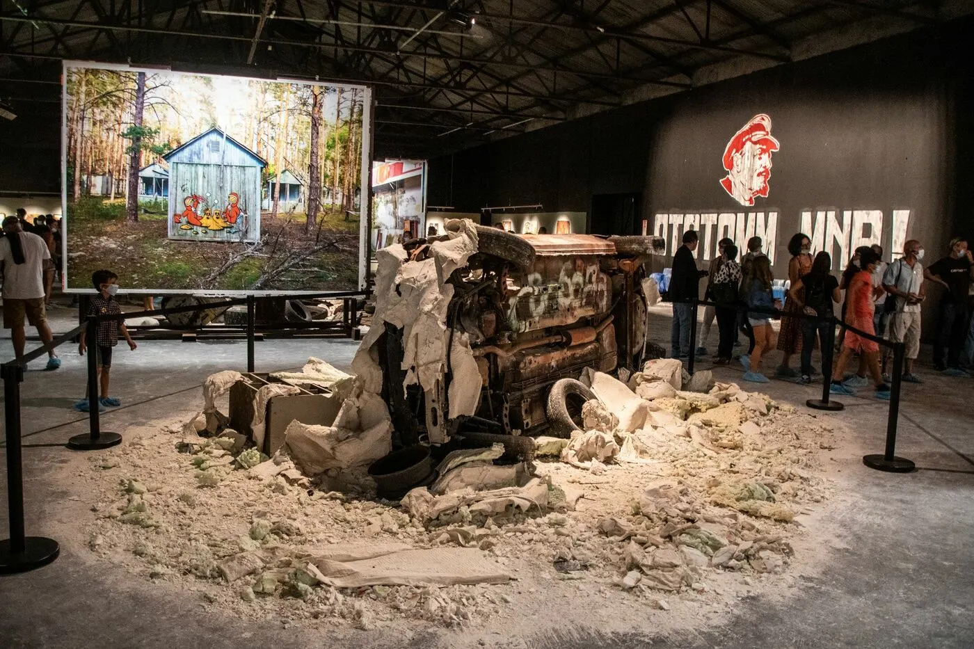 L’exposition vaut vraiment le détour ! Les peintures mettent en scène le Gouzou dans le « no man’s land » de la zone d’exclusion. Chacune des œuvres a tenu compte du contexte dans lequel elle se trouvait en respectant la mémoire du lieu, donnant vie aux ruines de Tchernobyl, en s’intégrant dans le paysage, sans le dénaturer.