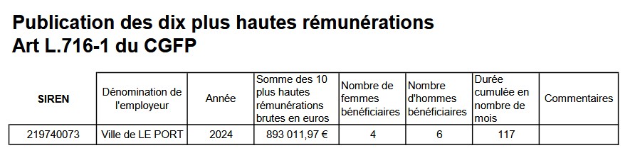 | 219740073 | Ville de LE PORT | 2023 | 872 149,29 € | 4 | 6 | 120 |